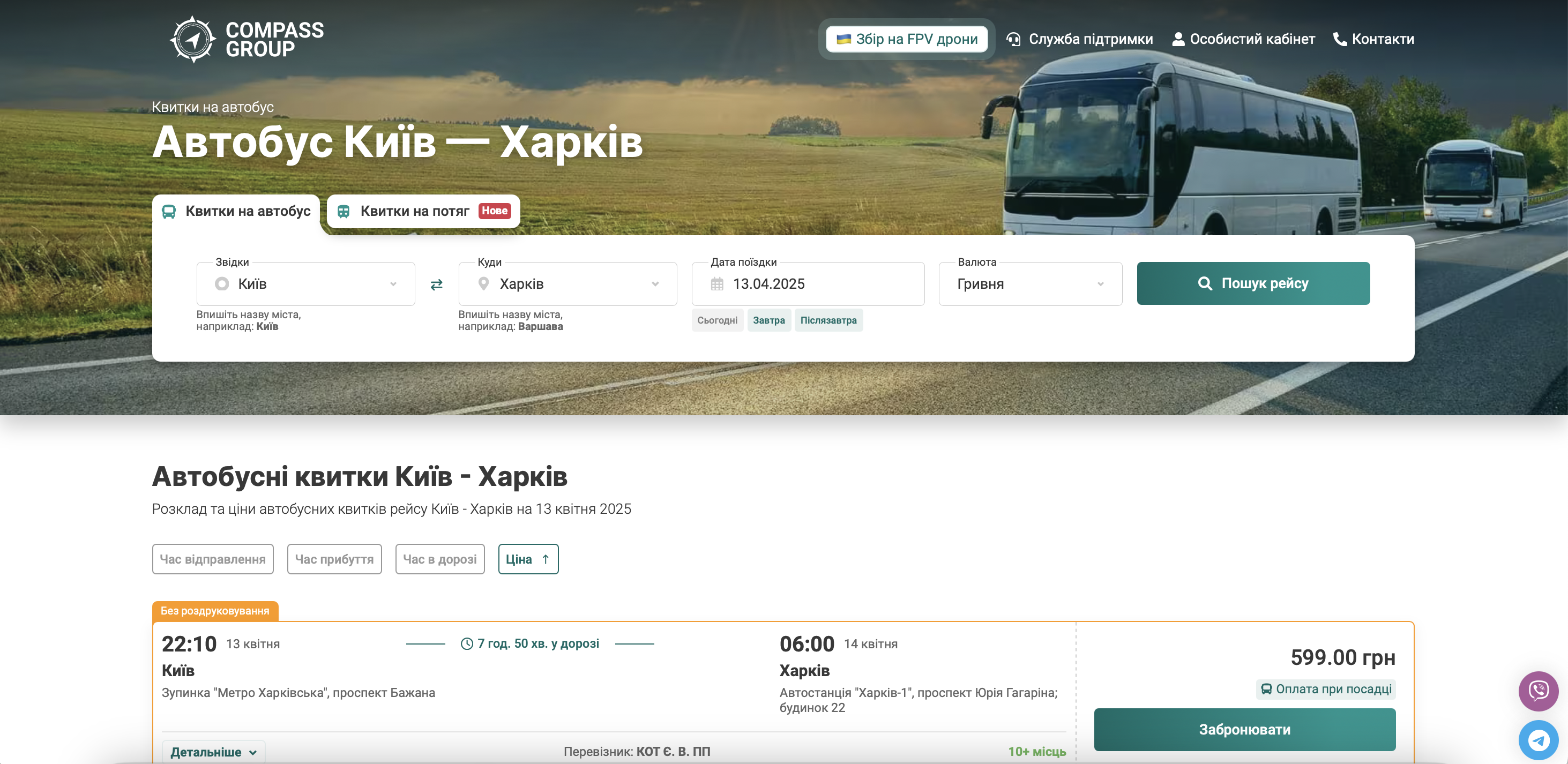 Скільки коштує квиток на автобус Київ – Харків?